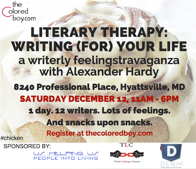 During Literary Therapy: Writing (For) Your Life, we’ll relax (with snacks) in a secluded, intimate setting as we open those closets and mine our lives for rich, relevant writing material. In a safe, calming and encouraging environment, you will flex your creative muscle while writing your way through the inspiring, the life-changing and the tragic alongside a dynamic group of similarly openminded, clarity-seeking folks.